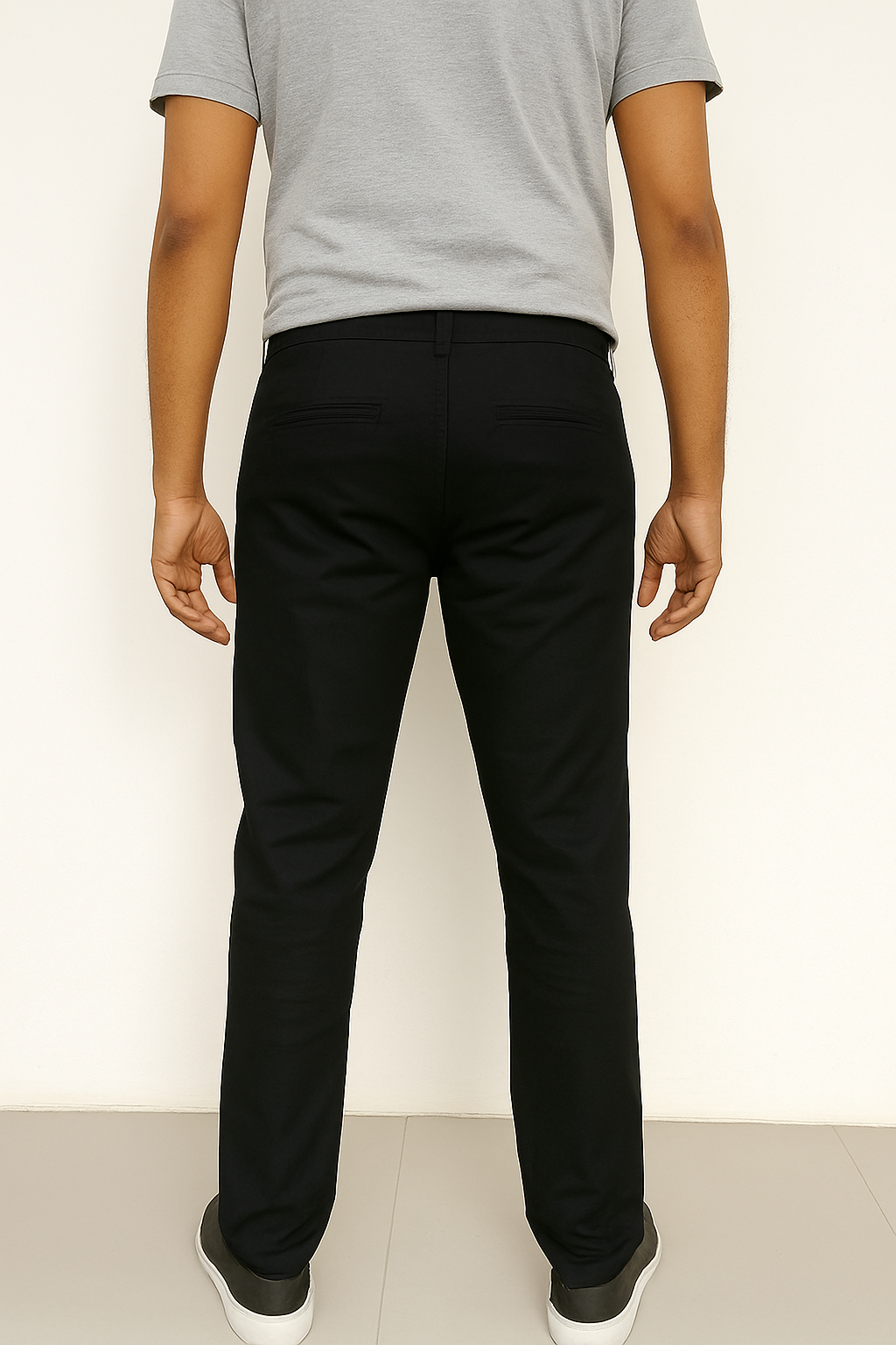 The straight-fit design gives a neat and modern appearance, perfect for office wear, formal occasions, or smart casual outfits. Its solid black color makes it easy to pair with shirts, t-shirts, or formal tops for a sharp and versatile look.