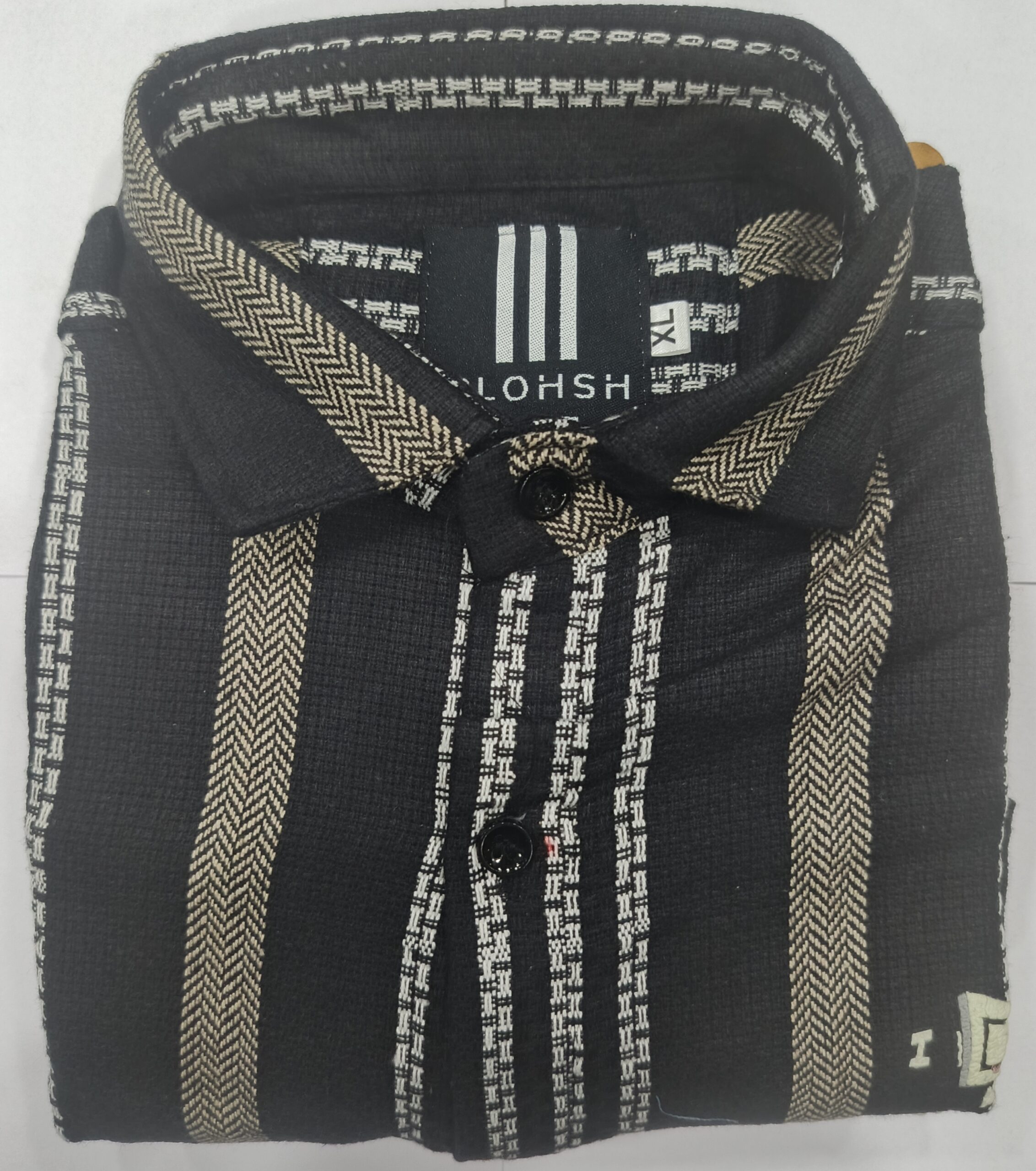 Make a bold fashion statement with this premium black textured shirt, designed with eye-catching beige and white vertical stripes. Its stylish combination of woven texture and modern stripe patterns makes it perfect for parties, outings, office wear, and daily use.