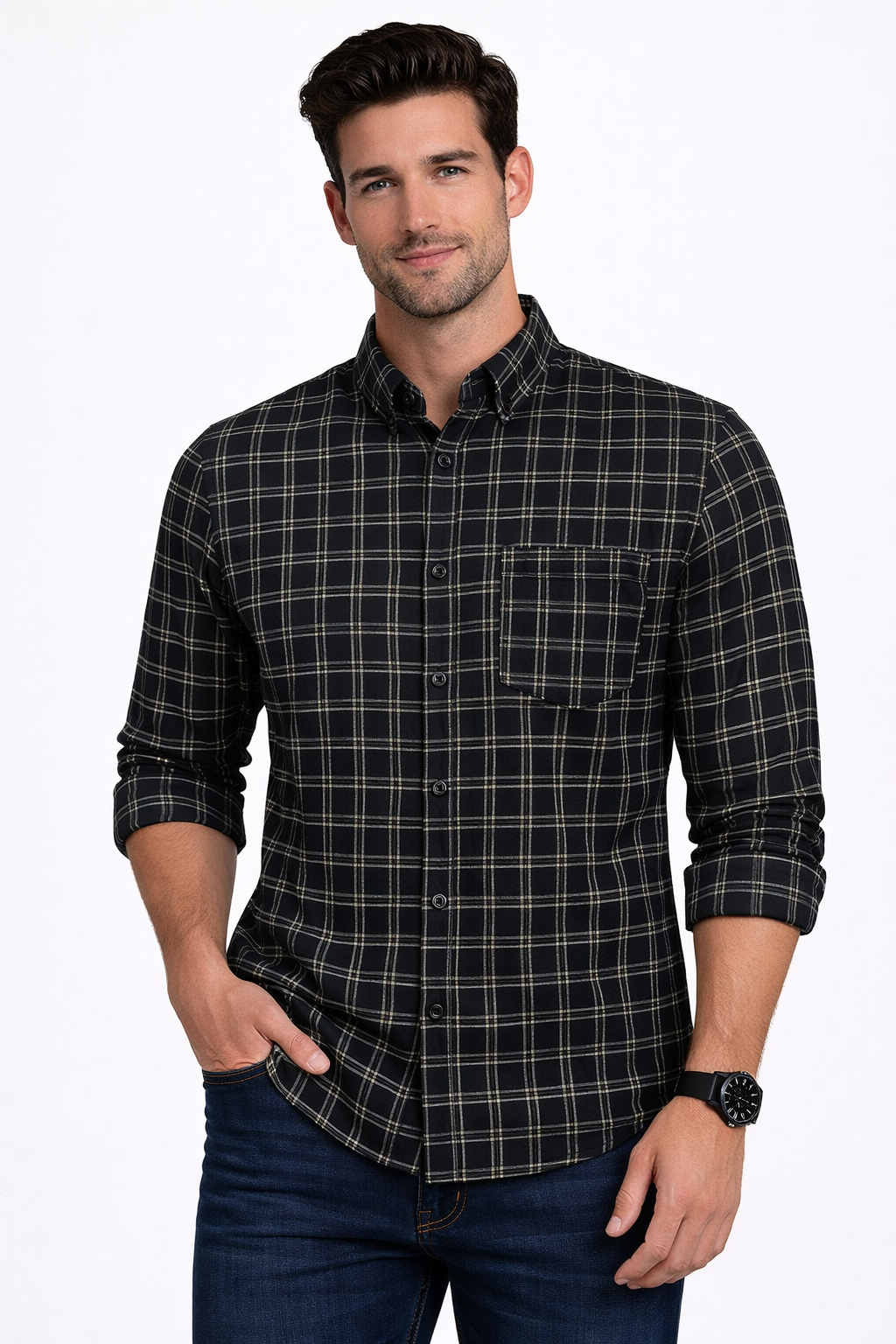 Make a bold style statement with this premium black and white checkered casual shirt, crafted for men who prefer sharp, modern, and versatile fashion. The crisp white checks against a deep black base create a striking, timeless design suitable for any occasion.