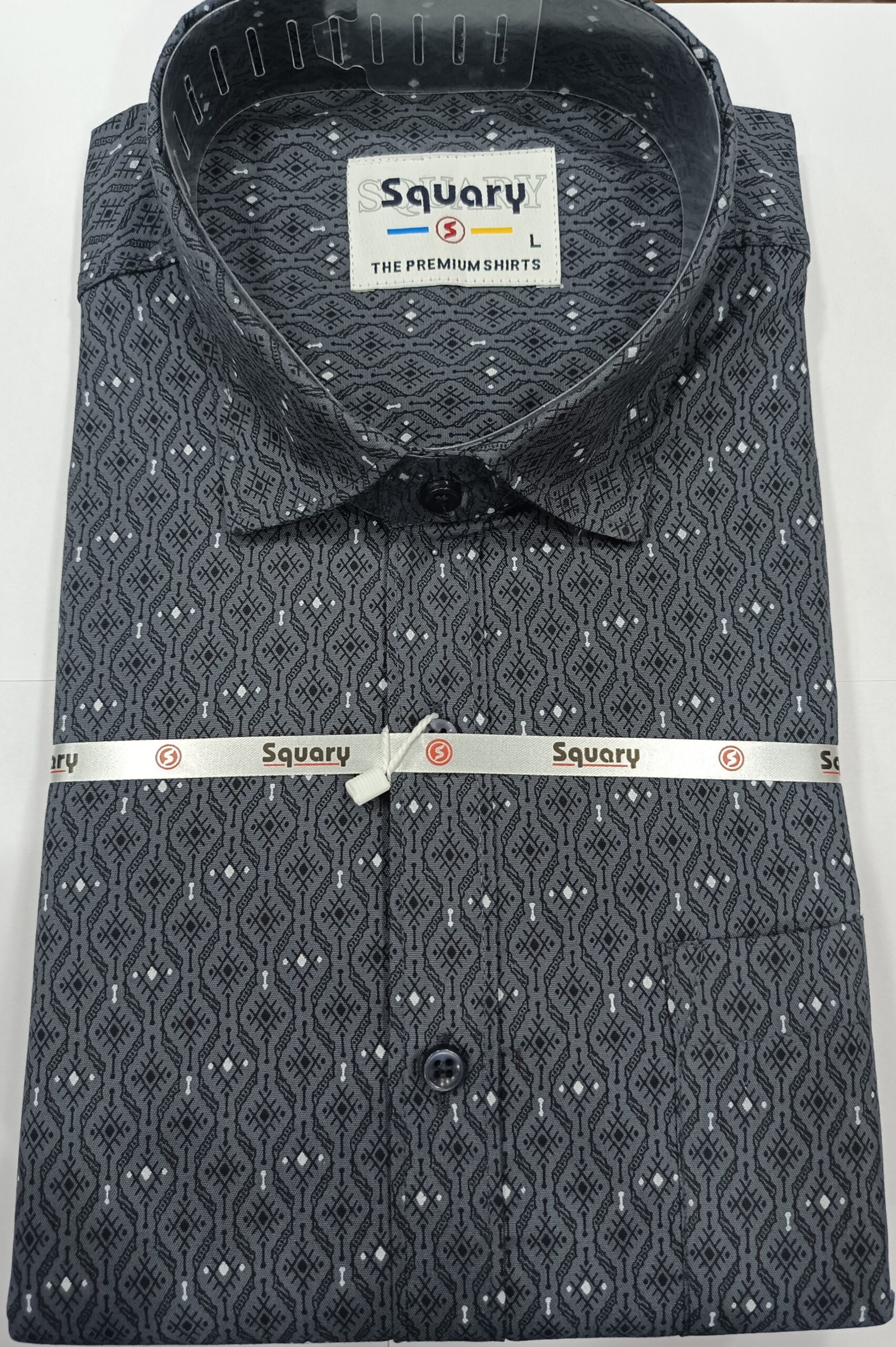 Enhance your wardrobe with this stylish dark geometric print shirt, designed for men who appreciate a modern and polished look. The deep charcoal base combined with fine geometric detailing creates a sophisticated and eye-catching design suitable for multiple occasions.