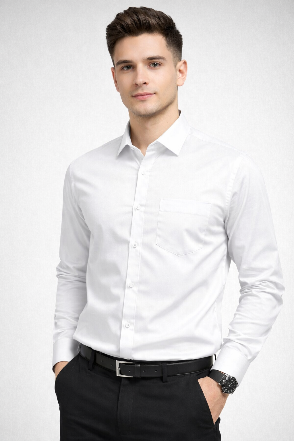 Crisp White Finish: Clean, bright white tone perfect for formal and professional wear.